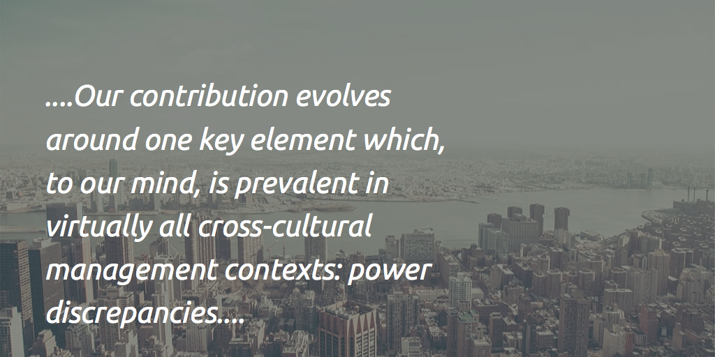 We aim to contribute to the critical study of cultural complexities in organizations, keeping in mind that it is the nature of dynamic complexities to be fluid and difficult to grasp systematically. Our contribution evolves around one key element which, to our mind, is prevalent in virtually all cross-cultural management contexts, namely: power discrepancies.