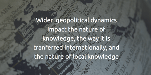 Much as disciplines such as management studies, organizational behaviour and industrial psychology would like to remain isolated from geopolitics, this is difficult as major world events and processes including world wars, imperialism and financial crises change things. To what extent is it possible to study ‘Japanese’ management, before first considering the influences on this, including the contributions from America after WWII? The same argument is applied to any international study, which involves focusing on ‘the other’ as noted above. The argument, however, goes deeper if we consider this from a Postcolonial Theory perspective: dominant geopolitical influences disparage local contributions, and this disparaging is internalized by local people. This discourages the articulating of local views, knowledge(s) and practices.